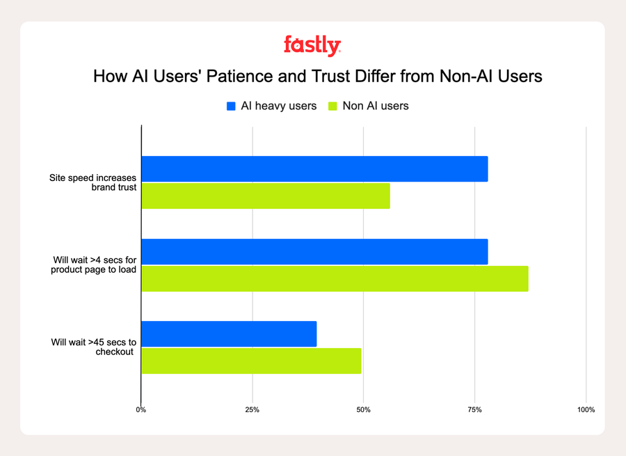 78% of heavy AI users will wait more than four seconds for a product page, compared with 87% of non-AI users.