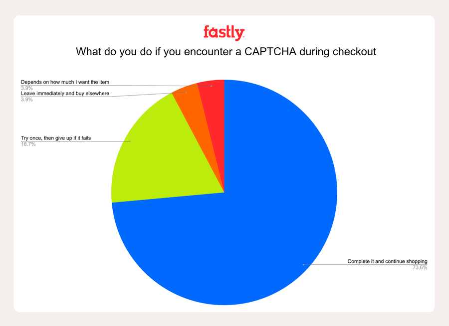 CAPTCHAs block revenue: When faced with a CAPTCHA during checkout, nearly 1 in 4 shoppers (23%) either abandon their cart after one failed attempt or leave to buy elsewhere immediately.