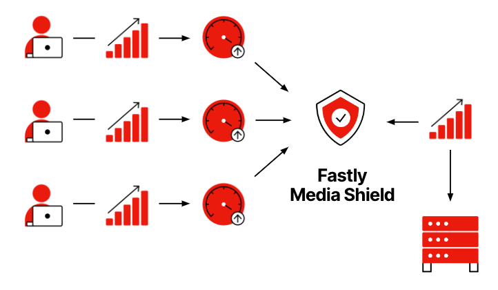 Fastly Media Shield is often deployed to establish an effective multi-CDN architecture through a CDN chaining configuration. Media Shield is designed to optimize multi-CDN architectures by acting as a powerful, centralized origin layer that dramatically reduces origin load while preserving high performance. By placing Media Shield behind your CDNs and pointing it to your infrastructure, you consolidate identical requests (request collapsing), turn cache misses into cache hits, and significantly cut origin bandwidth, processing, and egress costs. Serving as a shield through a designated Fastly POP, it protects origins from traffic spikes (thundering herd), improves cache hit ratios, and ensures better availability during high traffic or live events. Media Shield also enhances the quality of experience by preventing origin disruptions, providing real-time logs for rapid troubleshooting, and enabling instant global purges within milliseconds, giving teams tighter control, better performance, and a more cost-efficient multi-CDN setup.