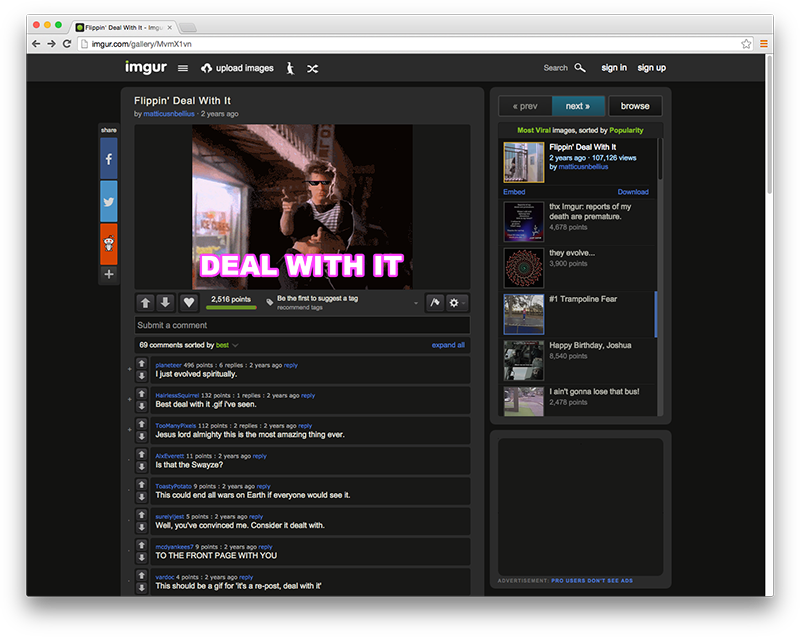 Imgur is the most popular platform for browsing and sharing user-curated images online. With mobile and desktop apps for generating memes and more than 1.5 million images uploaded daily, Imgur has grown into one of the most heavily trafficked websites in the world, boasting more than 130 million global users and 5 billion monthly pageviews.