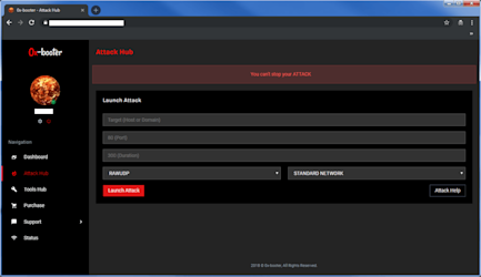 Launching an attack from a GUI platform is as straightforward as operating within any software. The interface tells you what inputs are needed, and with just the click of a button, you can launch an attack on the application of your choice. The example pictured below shows a purchasable DDoS-for-hire service that uses a botnet composed of tens of thousands of bots to launch attacks of at least 500 Gbps at a chosen application. To give a sense of scale - a high-volume DDoS attack is typically measured at 50 Gbps or more, meaning this service offers volumes ten times greater to anyone who can pay!