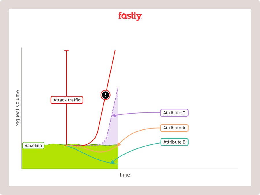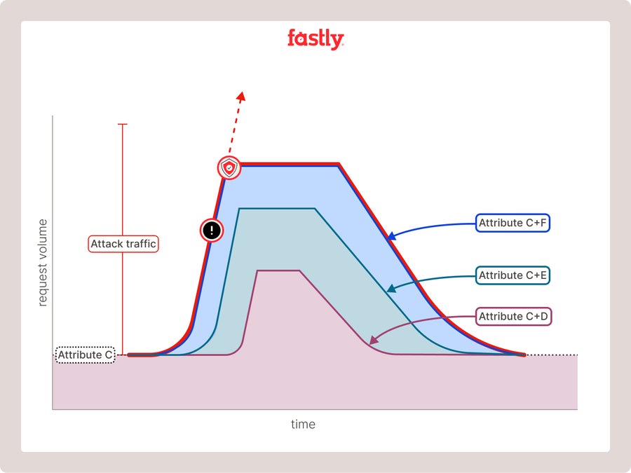 By considering both the nature of the traffic spike and its traits when detecting whether your service is experiencing an influx of legitimate traffic or an attack, the engine can minimize false positives. This approach enables legitimate traffic to quickly rise due to a sale, busy season, viral moment, etc., but if the attributes remain normally distributed, no action is taken.